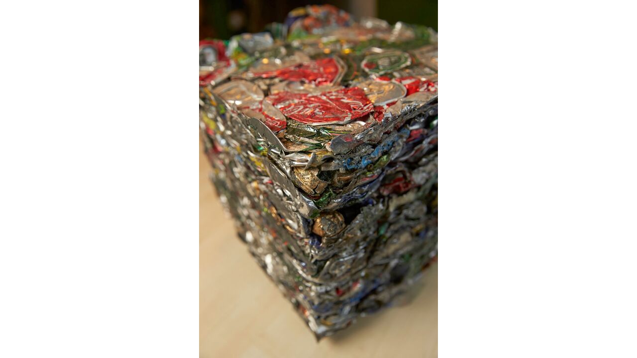 Aluminiumbalarnas storlek är cirka 300 x 300 x 300 mm och har en vikt på ungefär 16 kg. Burk Pressen kan komprimera cirka 30 balar per timme, vilket ger ungefär 500 kg pressade aluminiumburkar per timme.