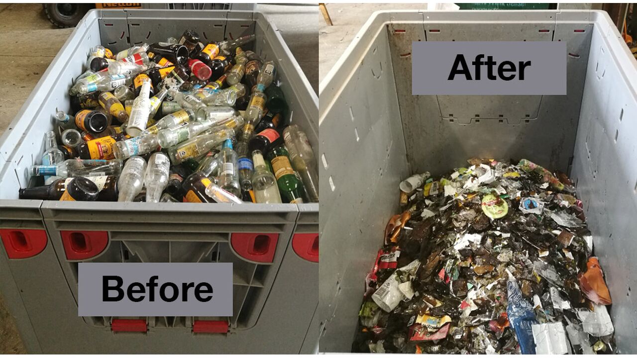 Maskinen, som effektivt krossar glasflaskor